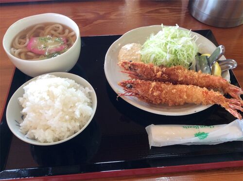❇️外食日記、 第52回目は 「海老フライ」を食べたくて 「シャンシャン茶屋」 に行きました。 【注文】 ❇️「えびフライ定食」 を頂きました。 【料理】 ❇️えびフライ定食❇️ ⚠️えびの大きさに応じて3種類があります‼️ えびフライ定食 →1280円(税込) お得なえび…