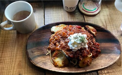 ❇️外食日記、 第369回目は 「パスタ」を食べたくて 「ガマの森」 に行きました。 【注文】 ❇️「佐土原ナスとモッツァレラのボロネーゼ +塩トリュフ香るティラミス」 を頂きました。 【外観】 【料理】 ❇️佐土原ナスとモッツァレラのボロネーゼ❇️ ❇️スープ❇️ …