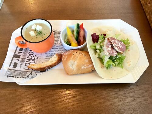 ❇️外食日記、 第464回目は 「Luce (ルーチェ)」 に行きました。 【注文】 ❇️「週替わりパスタランチ」 を頂きました。 【外観】 【店内】 【メニュー】 【料理】 ❇️前菜プレート トルティーヤ 野菜スティック ライ麦パン ラスク スープ ❇️エビと高菜の和風…