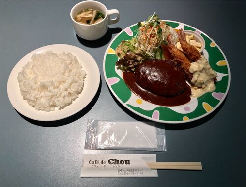 ❇️外食日記、 第680回目は 「カフェ・ド・シュウ (Cafe de Chou) 」 に行きました。 【注文】 ❇️「Cコンビ(エビフライ・ハンバーグ) +キャラメルムース」 を頂きました。 【外観】 【店内】 【メニュー】 【料理】 ❇️Cコンビ(エビフライ・ハンバーグ‼️)❇️ ❇️…