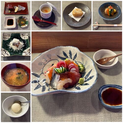 ❇️外食日記、 第1530回目は 「お魚」を食べたくて 「鮨と魚肴ゆう心」 に行きました。 【注文】 ❇️「輝き(6品)」 を頂きました。 【外観】 【店内】 【メニュー】 【料理】 輝き(6品‼️) ❇️小鉢(炊き合わせ‼️)❇️ ❇️ゴボウの揚げ物❇️ ❇️茶碗蒸し(秋鮭と山芋の…
